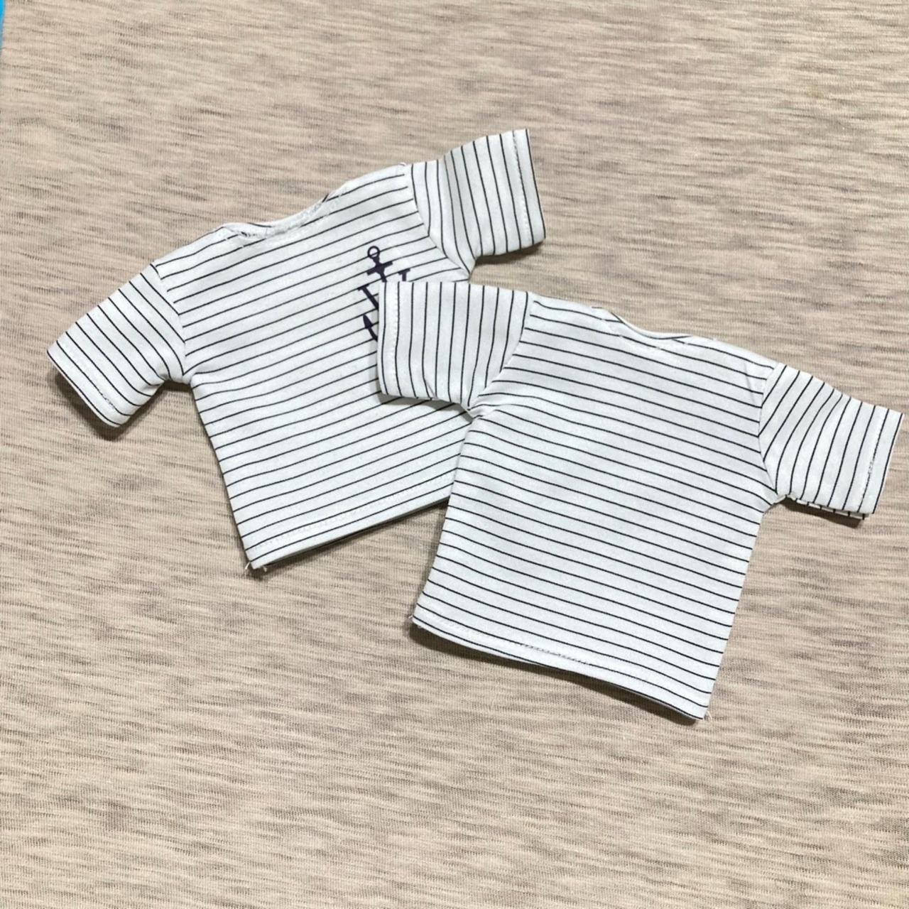 夏らしいピンストライプのイカリマーク風のプリント入り