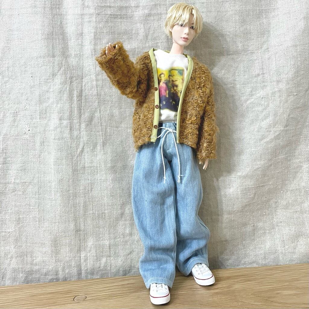 ニットカーディガンとデニムパンツ、プリントTシャツの3点セットの第二弾!