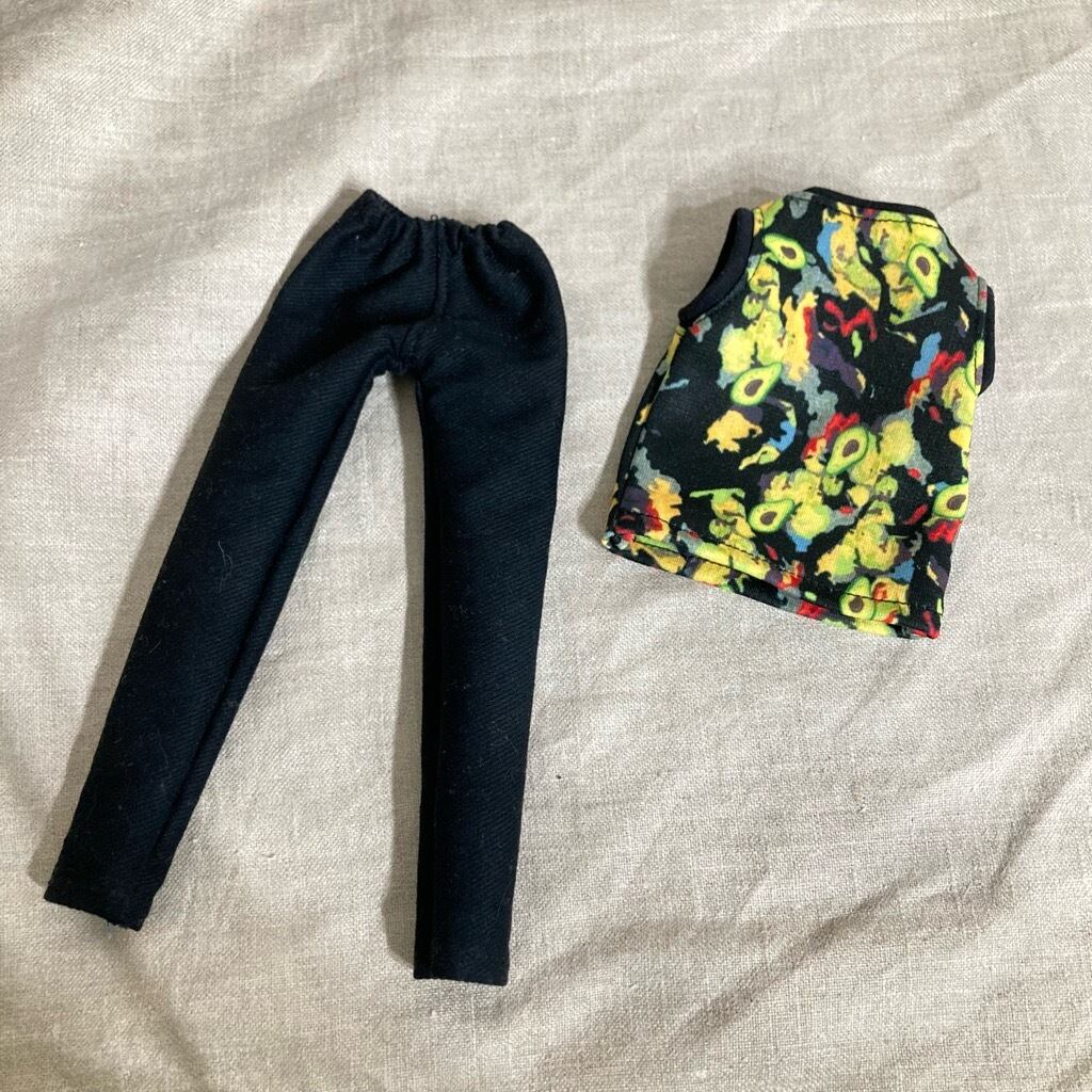 マテルドールサイズに合わせて作ったアボカドタンク、後ろゴムウエストパンツ、チェーンネックレスの3点セット。